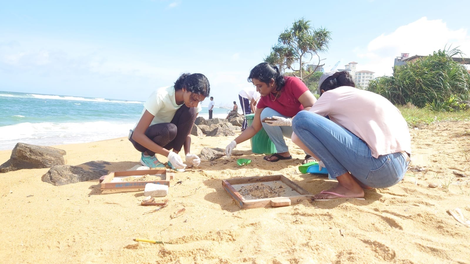 Four years after the X-Press Pearl disaster, volunteer groups like the Pearl Protectors continue their cleanup efforts, manually removing plastic nurdles still buried deep in Sri Lankan beaches. Photograph: The Pearl Protectors