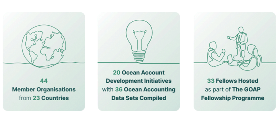 - 33 countries undertaking ocean accounting initiatives within GOAP